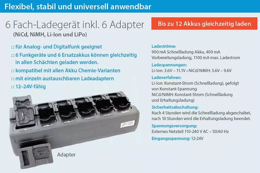 6+6-Stationen Ladegerät inkl. Adapter für Motorola GP360, DP3441