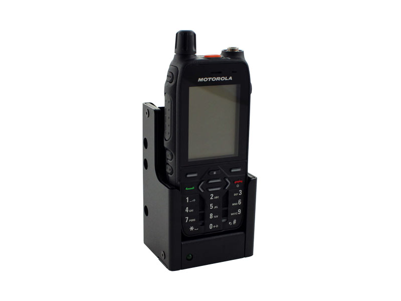 This car charger has been developed for holding and mounting Motorola MXP6000 handheld radios and controls the charging of Li-Ion batteries using a microcontroller. It determines and controls the optimum charging characteristics for all battery types (CC / CV controlling). The battery charge status is checked at dynamically adjusted intervals. This enables energy-saving continuous use with extended battery life. The system switches off after a full charge! Charging is only maintained as required in order to keep the charge level at a minimum of 80%. The operation of all switching elements and buttons remains freely accessibleduring the use! Easy handling and precise device guidance ensure a secure hold and contact in the charging cradle. Gold-plated spring bronze contacts ensure long-lasting function thanks to low contact resistance and are easy to clean. A 5-fold display for operational readiness, charging with constant current (CC) or constant voltage (CV), as well as battery / temperature error message provides information on the status of the battery in the charging cradle.