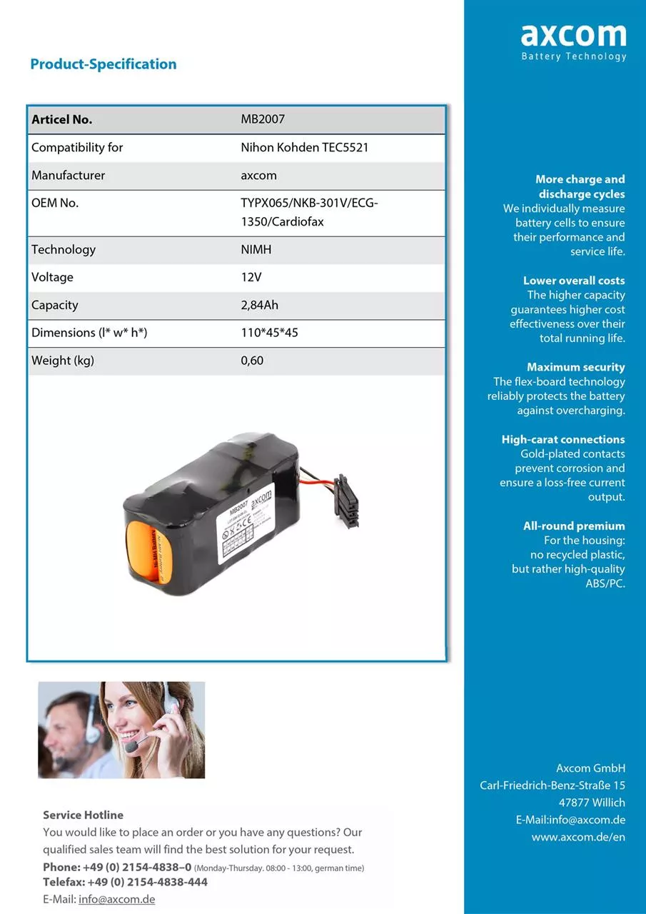 | Highlights | 12 month warranty Compatible with the medical device Made in Germany incl. declaration of comformity tested quality cells |