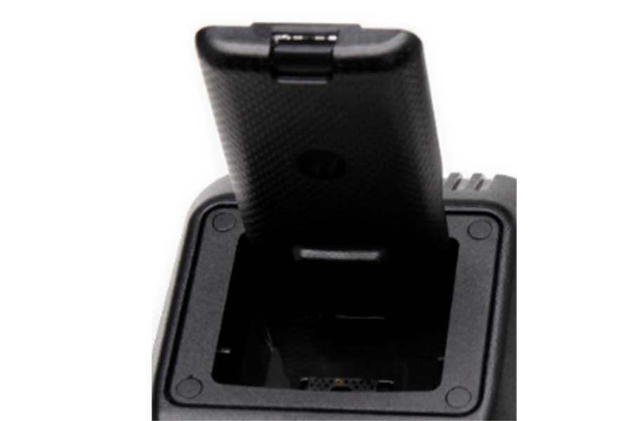 With the Axcom desktop chargerSM-X1-MTP6650 for Motorola MTP3350, MTP6650, MXP600 radios, you can charge both your battery and the radio directly. An LCD display shows the charging voltage, charging current and capacity while the battery is charging and discharging - no additional software is required. By measuring the capacity, you can quickly identify defective batteries and counteract unexpected failures of your devices.