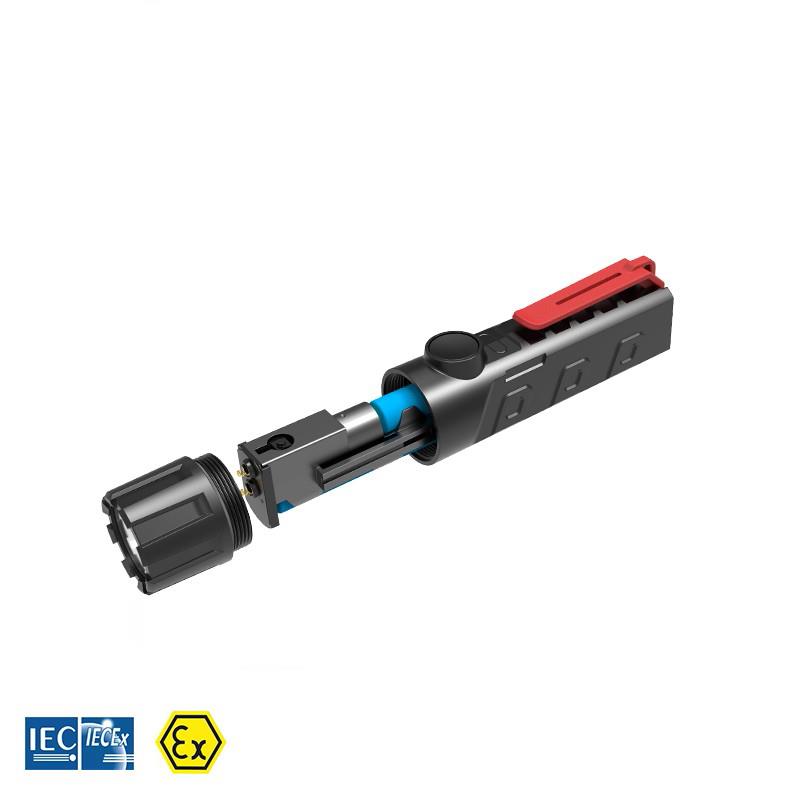 ExMP31N is an intrinsically safe explosion-proof flashlight powered by 3 AA alkaline batteries. It is suitable for Zone 0/1/2 and Zone 21/22. The housing is made of high-performance nylon, has a user-friendly design and is antistatic, lightweight, shock-resistant, corrosion-resistant, oil-resistant and ageing-resistant. The high luminosity of the flashlight is maintained even during the discharge cycle. Axcom also offers a belt clip to attach the flashlight.