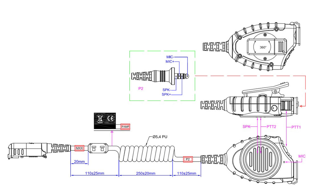Handbedienteil IP56 für MTP3550, Nato Belegung, Schwarze PTT, Überbrückter Kondensator