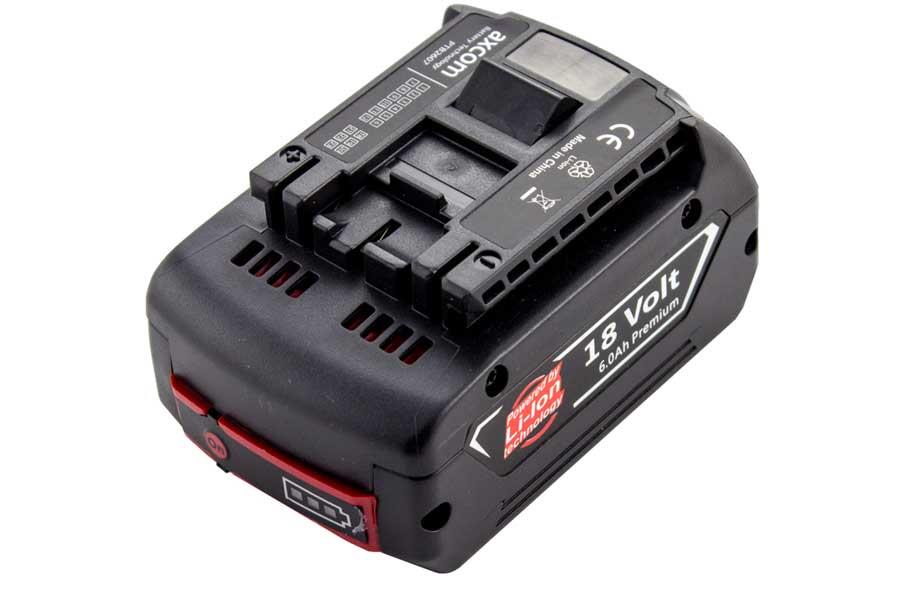 The new original Axcom Li-Ion battery for BOSCH GBA 18V Powertools has an enormous capacity of 6,000mAh.