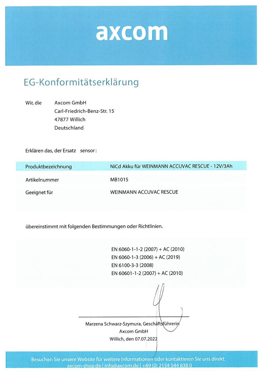 Original Axcom Battery suitable for Weinmann Accuvac Rescue