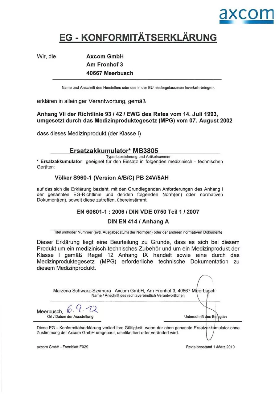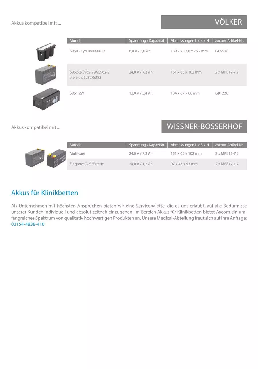 Original Axcom battery for Völker patient beds S960-1 (version A/B/C)