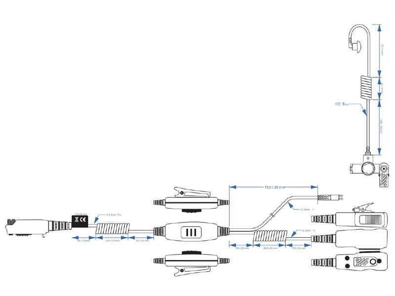 Sound tube Headset 2 cable Solution for Sepura STP8000, STP9000, SC2020